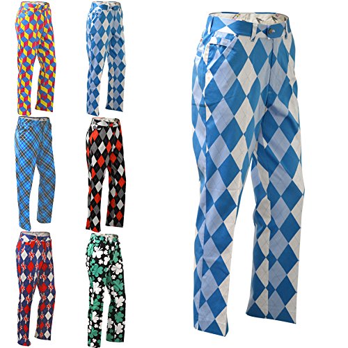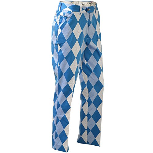 Studio : Royal Awesome Publisher : Royal Awesome Binding : Sports Apparel Product Description Royal Awesome Mens Old Toms Trews PantsClassic Diamond Print With Modern FlareRoyal Awesome golf pants are here to add some fun to your golf course outing. You'll turn heads in their stylishly loud patterns that add a modern twist to the fun traditions of the game of golf. And so everyone knows you're having the most fun on the course, each pair comes with a golf tool/bottle opener!Royal Awesome Mens Old Toms Trews Pants features: * Blue and white diamond pattern adds flare to any golf outfit * Breathable, soft fabric is made for comfort and durability * Stretch engineered for a full range of golf motion * Tee loops and tour slit for pants that are truly designed for the golf course * Designed for a true to size fit * 97% Cotton a 3% Spandex Royal Awesome...For The Pars And The Bars! 0