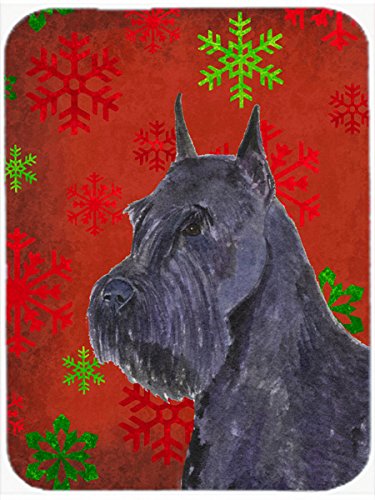 Caroline's Treasures SS4730LCB Schnauzer Red and Green Snowflakes Holiday Christmas Glass Cutting Board, Large, Multicolor