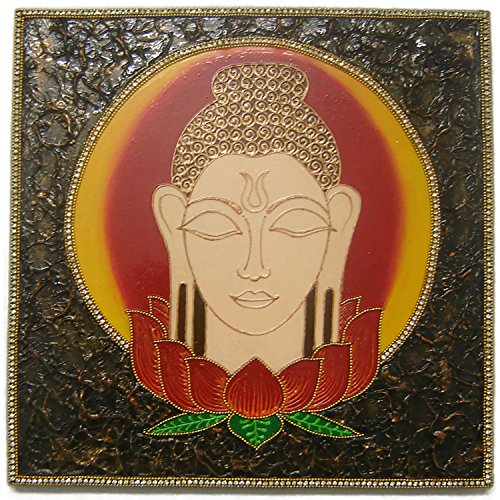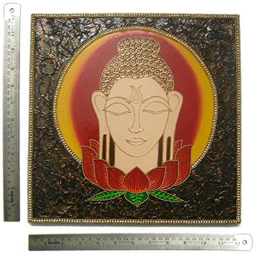 This Buddha Painting for wall decoration is inspired by my recent trip to Bhutan. I have created this Buddha Wall Painting incorporating traditional Amitabha and Gautama Buddha postures of meditation. The painting is 12" x 12" (30 x 30 cm). The base is environment friendly Multi-Density Fibreboard (MDF). The basic design is created with acrylic paint. All the edges are embellished with tiny bid chains. The circle of Buddha is surrounded with dark brown clay work. The painting has a hanging attachment in the back and it can be easily hung on a wall of your living room, yoga room, meditation room or even office to bring peace and tranquility. You will require to have a nail affixed on the wall to hang the painting.