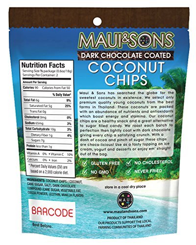 Maui & Sons Dark Chocolate Coated Coconut Chips 6 bags 1.2 oz