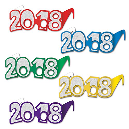 Beistle 50676-18, 50 Piece 2018 Glittered Foil Eyeglasses, One Size Fits Most
