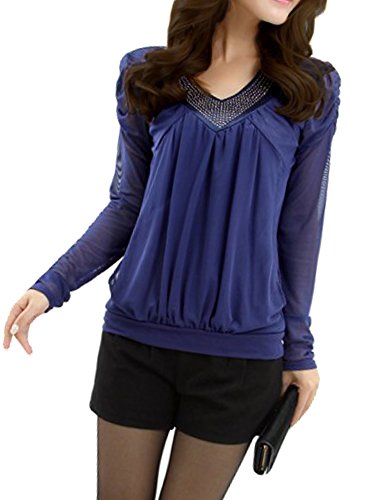 -. Feature : 素材 : ポリエステルシフォン / 仕様 : 長袖シフォンブラウスシャツ / 特徴 : 絶妙な透け感やVネックのデザインが魅力的 / サイズは商品説明をご確認ください。