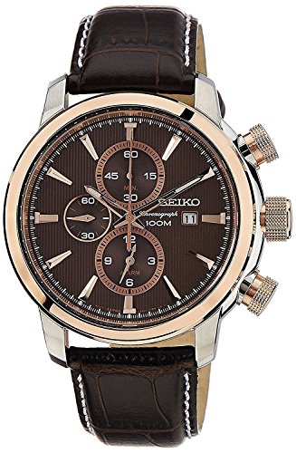 세이코 Seiko Men''s SNAF52P1 Sport Chronograph Brown Dial Brown Leather Watch 남성...