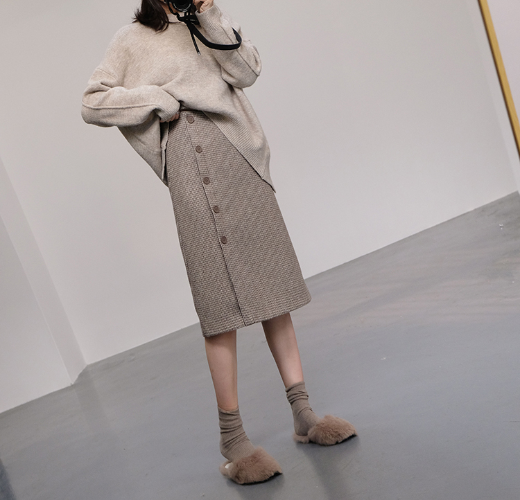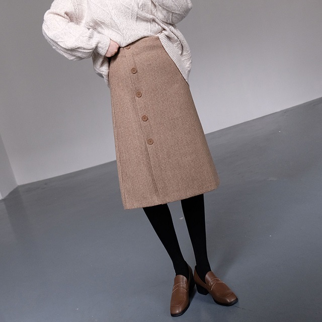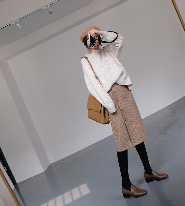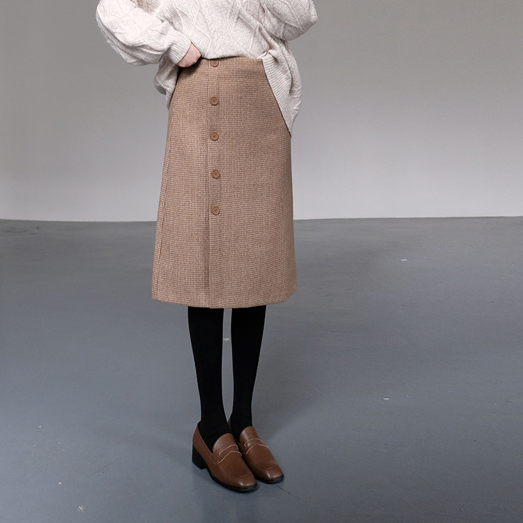 秋冬にぴったりな色味と生地感のスカートは、ハイウェストで足長効果もバッチリの一枚となっております。