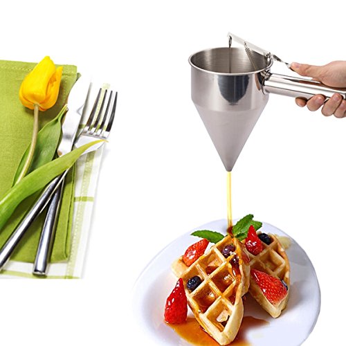 -. Feature : Material: Stainless Steel Color: As Pictures Show Weight: About 500g Size: Funnel diameter: 13cm Height: 23cm Length of handle: 12cm / Package included: 1 x Funnel 1x Rack
