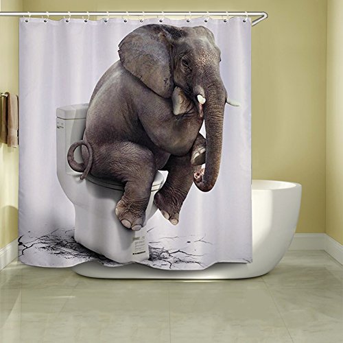 Vlcoo 72 X 72 Inch elephant digital printing Anti Bacterial Waterproof Polyester Shower Curtain
