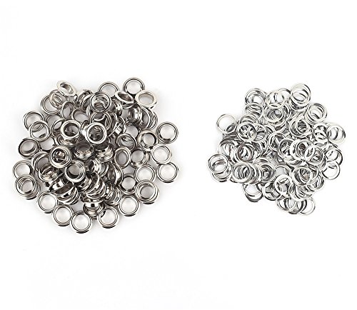 100 Sets Silver Eyelets Grommets Washers Metal for Leather Crafts Clothing Tarpaulins (3/8"(10mm))