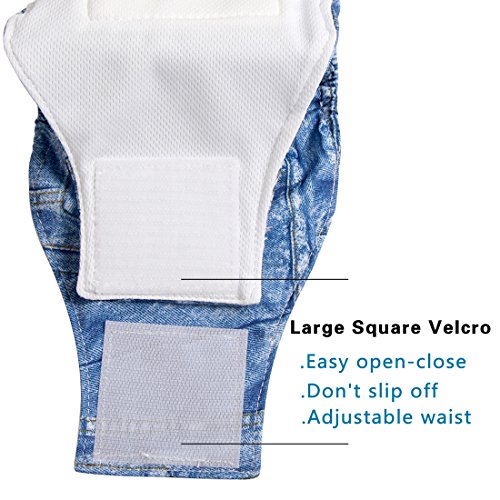 Studio : Qinwanke Publisher : Qinwanke Binding : Misc. Product Description Best for male dogs,Size L fit waist 16"to 20"; JoyDaog brand dog diapers have super-absorbent pad,can keep long-lasting protection, specifically fit for male dogs with urinary incontinence, excitable urination, and marking issues. With it, you will no longer worry about your dogs urine in the carpet,sofa etc ,to keep your house clean. Features: SUPER STRONG ABSORPTION,AND TO PREVENT LEAKS,KEEP HOUSE CLEAN strong absorption diaper pad is sewned into the diaper middle ,we are uniquely designed with leak protection of 2 layers microfiber which can easily absorb urine,keeps your dog drier during prolonged use, and has a waterproof outer layer to prevent leaks and damage to carpet,sofa etc. ADJUSTABLE WAIST BY LARGE SQUARE VELCRO,EASY OPEN-CLOSED: SOFT COMFORTABLE,BREATHABLE: ELASTICS EDGES,KEEP YOUR DOG EXTRA COMFORT: REUSABLE AND WASHABLE,DURABLE: WEAR WAY: Opening the Velcro closure, around your dogs' back waist just above the penis, adjusting the fit size by the Velcro fastener to make your dogs comfortable. Colors:Fashion Jean(Pack of 3) Size: XS:(8"-10"waist) S:(10"-13"back waist) M:(13"-16"back waist) L:(16"-20"back waist) NOTE:Please must accurate measure your dog's back waist just above the penis before your purchase?to ensure a good fit.