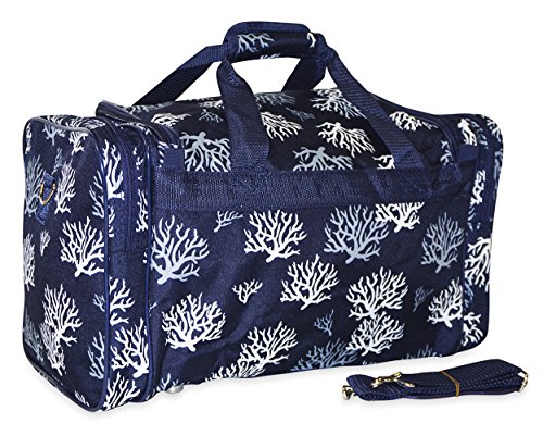 -. Brand : Ever Moda -. Color : Navy Blue -. Department : womens -. EAN : 0753610324324 -. Feature : Adjustable, detachable non-slip padded shoulder strap / U-top opening provides easy access to roomy zipper secured main compartment / Metal feet allows stability to bag when setting down and provides bag floor not to touch floor directly to get dirty / Front exterior zip pocket with two exterior end zip pockets / Matching color zippers -. Model : SW9523NV -. PackageQuantity : 1 -. ProductGroup : Apparel -. ProductTypeName : LAGE -. Size : 22-inch -. Title : Ever Moda Navy Seaweed Duffle Bag 22-inch -. UPC : 753610324324