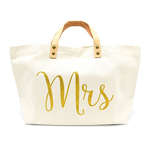 -. Brand : PumPumpz -. Department : womens -. Feature : Printed gold glittery / Width 18" x Height 10 " x Bottom 6 " / Canvas 15 oz. Fabric Sturdy canvas construction / Mini pocket inside and magnetic button and hard sheet for bottom / Tote Bag With Gold Box Packaging. Great gifts for Bridesmaids.... -. ProductGroup : Shoes -. ProductTypeName : HANDBAG -. Size : Medium -. Title : PumPumpz " Bride / Mrs" Large Bridal Tote Bag Natural white and glittery for Wedding Gifts...