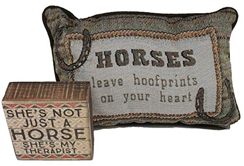 Horse Lover Gifts Horse Lover Gift Set - 2 Piece Set - Mini Pillow and Wood Block Sign - Comes In Organza Bag So Its Ready For Giving