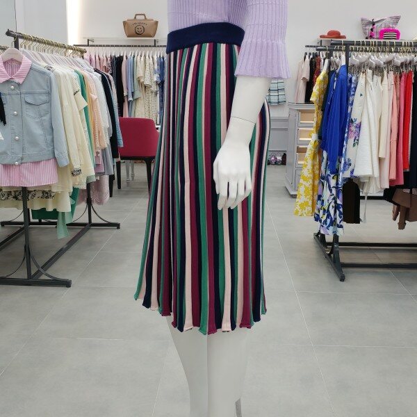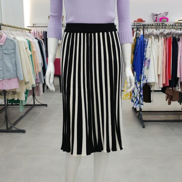 세로스트라이프가 슬림해보이는 효과를 주는 니트스커트 입니다