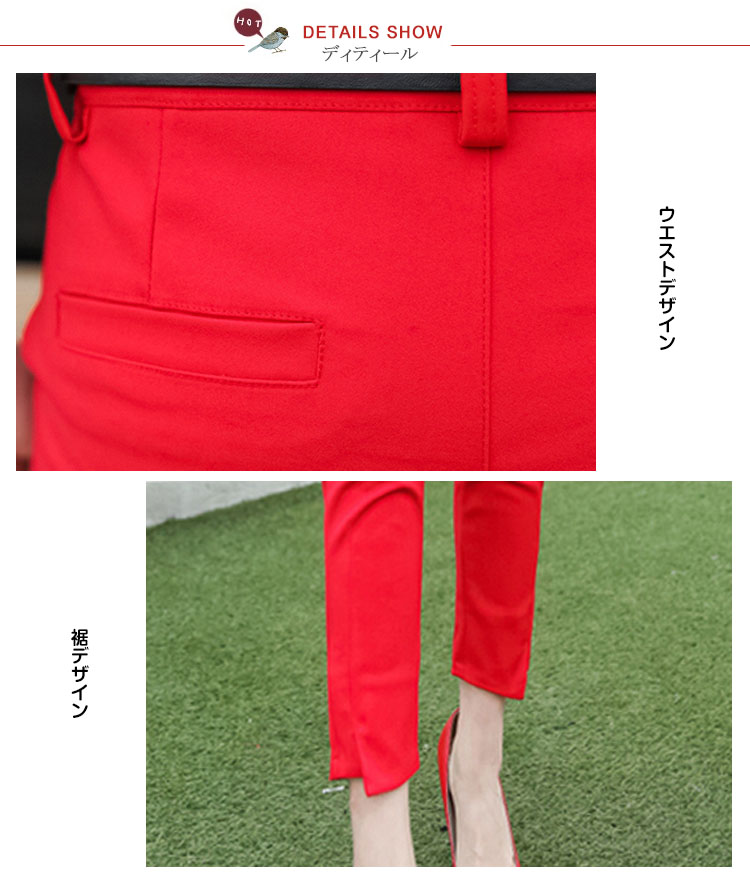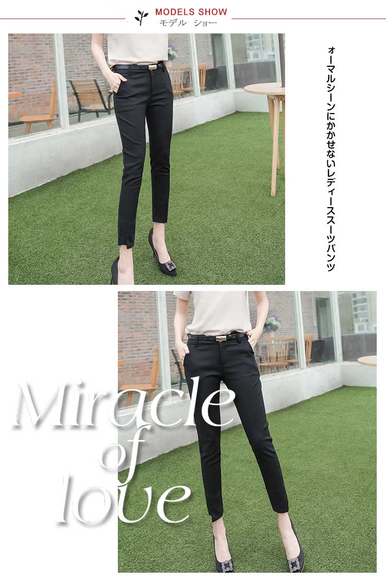 | ォーマルシーンにかかせないレディーススーツパンツ出番がフォーマルだけじゃもったいないからどんなシーンにもマッチするシンプルできれいなシルエットにこだわりましたハイウエストデザインはお腹周りに安心感を持たせてくれ、足長効果も叶えてくれる | |