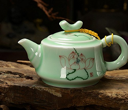 -. Title : DELIFUR Longquan Celadon Handcrafted Tea Set Underglaze Colour Porcelain Hand Painted Lotus Theme Puer Tea Pot Single Pot
