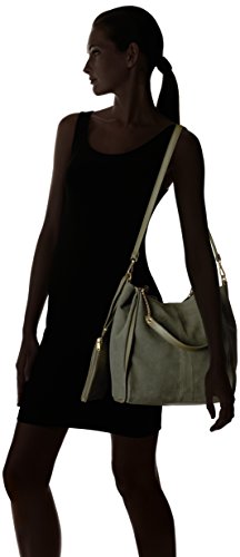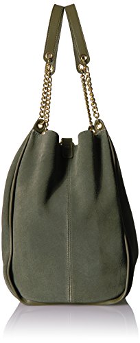 Slouchy hobo-style tote in suede featuring leather trims and chain handles