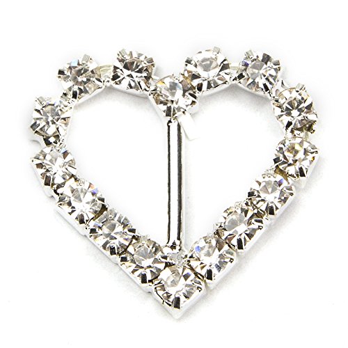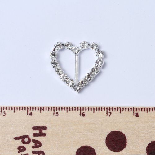 Janecrafts 50pcs 21mm Sweet Heart-shaped Rhinestone Buckle Slider for Invitation Wedding Letter