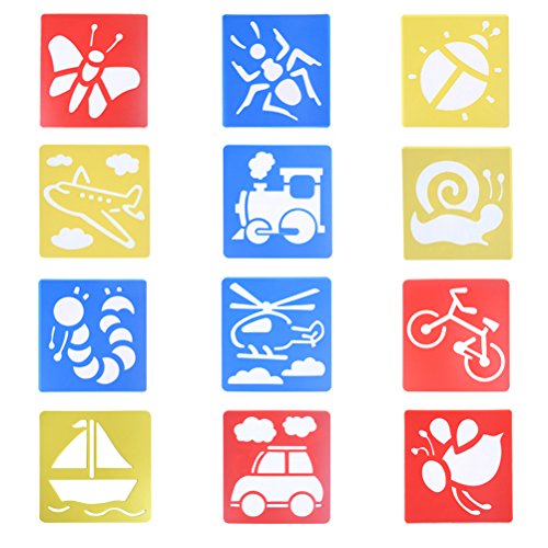 Package included:12 Pieces Kids Painting Stencils(6 insect stencils,6 transport stencils)