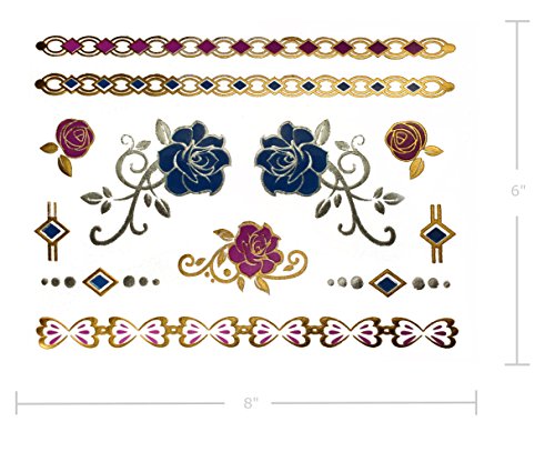-. Title : Premium Temporary Flower & Rose Tattoos - 75+ Beautiful Designs in Metallic Gold & Silver, Black, Blue, & Pink - Fake Jewelry Tattoo Bracelets, Wrist & Arm Bands, & More (Lola Collection)