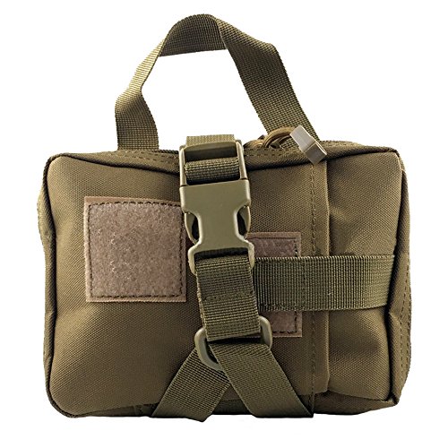 -. Feature : Dimension: 7.1*5.5*2.4 inches (L*H*W) / Double zipper closer, elastic loops, instrument holders for small supplies / Rip away velcro panel and wide handle for removal or carrying quick access to first aid supplies / Molle equipped, 2 inches patch area across front of pouch for a First Aid or Morale Patch / Strong webbing belt loop, durable for home improvement, outdoor medical or put in your car for emergency