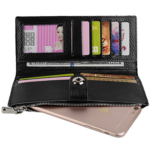 -. Binding : Apparel -. Brand : YALUXE -. Department : womens -. Feature : ATTENTION:Our company Yaluxe is now updating our brand and package from "Yahoho" to "Yaluxe" for better brand recognization,hence you may receive products tagged with either of them.---Coated Leather.Cow Split leather is often coated to be various colors and pattern, and it is durable than other cheap materials. / Silver-tone hardware,detailed streamlined stitching and magnetic snap button.Unique bifold design with Magnetic Snap Closure. / 3 full-length compartments for cash/bills,10 card slots for ID / credit cards ,including 1 photo slots.Fit up to iPhone 6 Plus with a slim case/Samsung Galaxy S3/S4/S5/S6 with a slim case. / Bifold design is made for you to keep your cash,cards and smartphone oraganized well and easy to use. / Dimensions: 7.71"L x 3.74"H x 0.59".(fit up to 5.5" smartphone with a slim case) -. ProductGroup : Apparel -. ProductTypeName : ACCESSORY -. Size : Large -. Title : YALUXE Women's Genuine Leather Smartphone Wallet with Magnetic Button