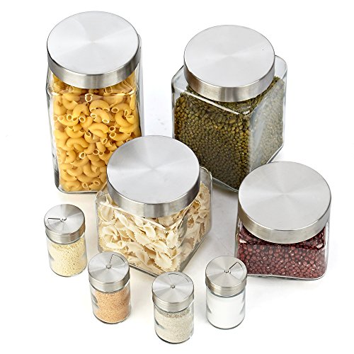 Cook N Home 8-Piece Glass Canister and Spice Jar Set