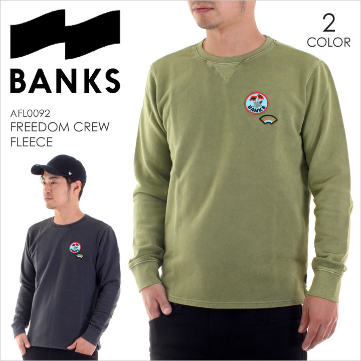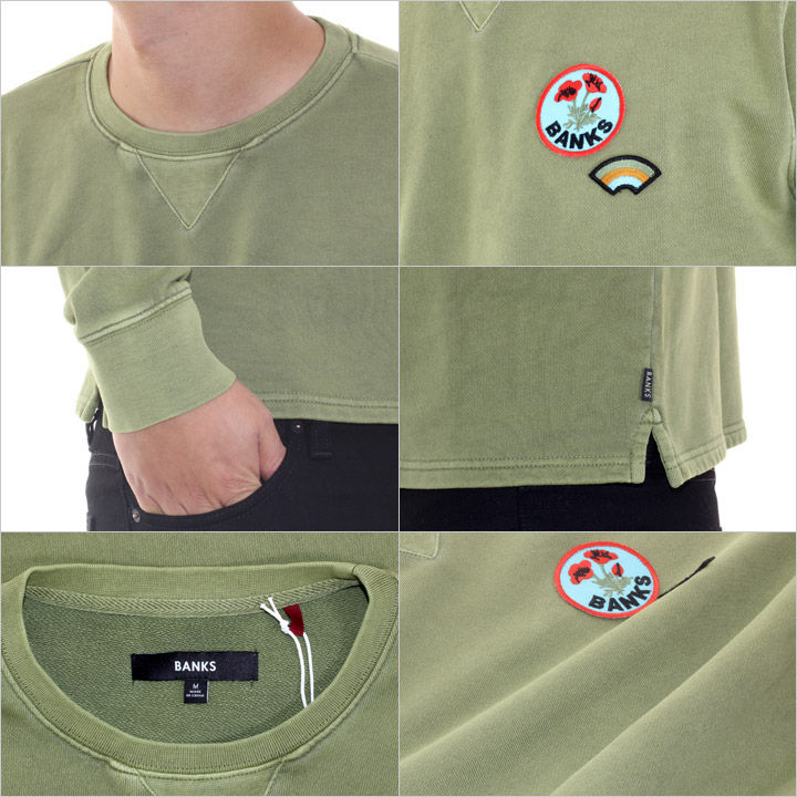 ウォッシュ加工が施された大人好みな落ち着きのある風合いが味わえるスウェット。 シーズンを問わない程良い厚みのボディーのライナーは、肌触りの良いフレンチテリー素材になっていて、ストレスのない着用感を実現。 シンプルなシルエットに程良いアクセントを与えてくれるイラストワッペンが配され、BANKSファンはもちろんサーフスタイルを愛する方も大満足できるデザインがオススメポイントです。