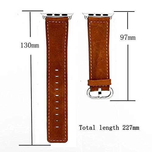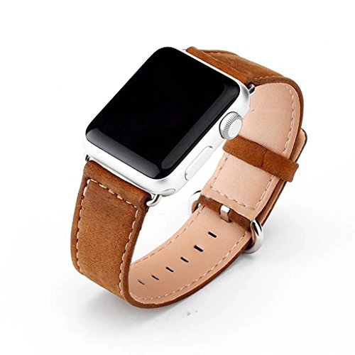 Apple Watch Leather Band, Genuine Leather Band Single Tour Replacement Smart Watch iWatch Strap Bracelet with Adapter Clasp for Apple Watch 38mm (Brown)