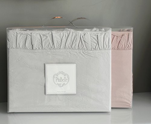 Piu Belle Shabby Chic Ruffled 4pc Sheet Set Queen or King 100% Cotton Cottage French Country Style Frilled Sheets White (Queen, Rose Dust)
