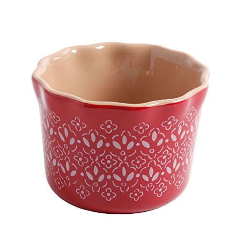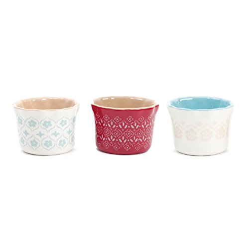 The Gibson Home General Store Cottage Chic Six Piece Ramekin set features six hand-painted durastone ramekins in three unique designs sure to bring color and vintage style to your home. Each ramekin holds up to 7.1 ounces, making it perfect for desserts such as creme brulee. These 3.5" ramekins are perfect for serving other desserts as well, plus snacks or other fare while providing a vintage, yet contemporary feel to your home. Get your ramekins today!Feature
