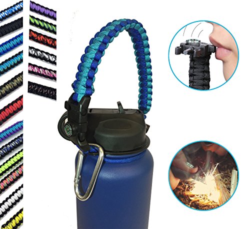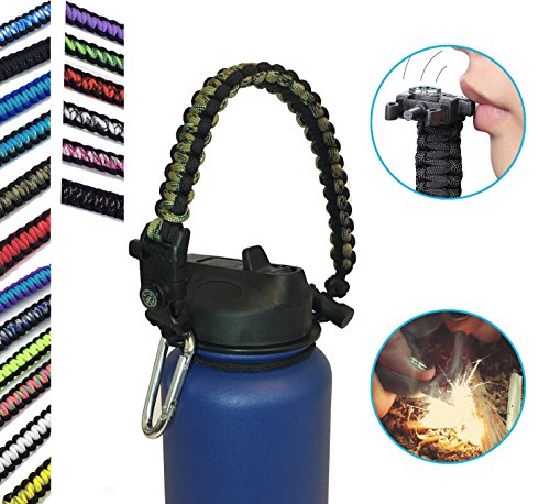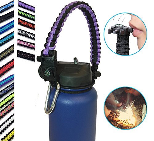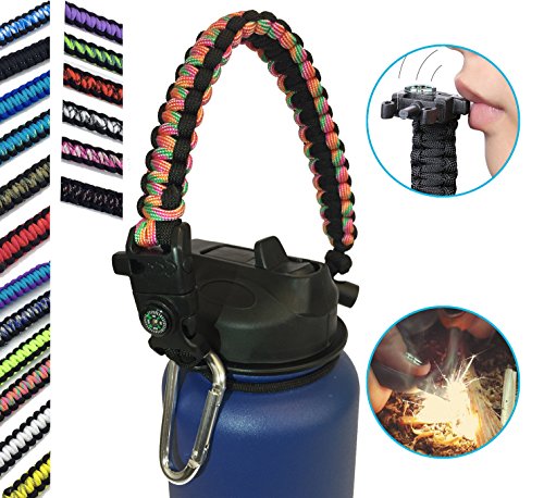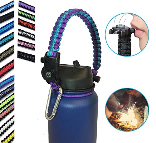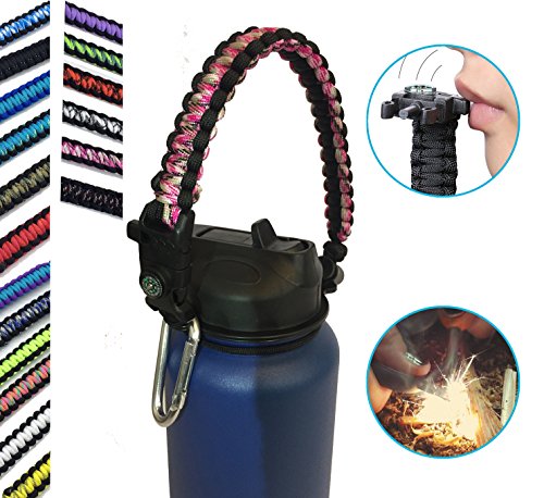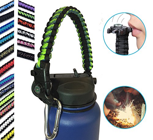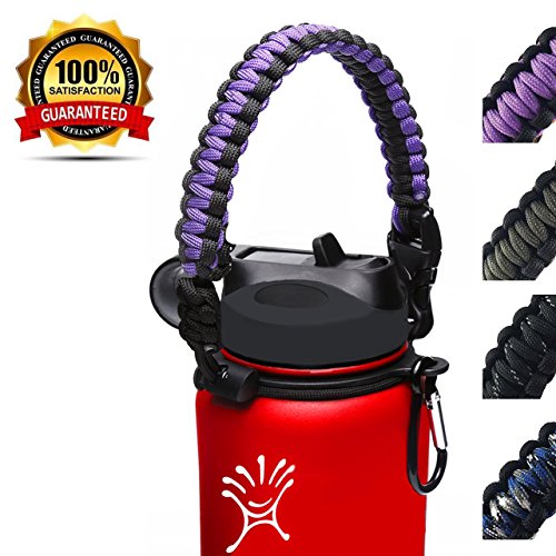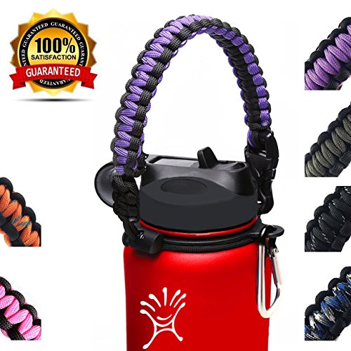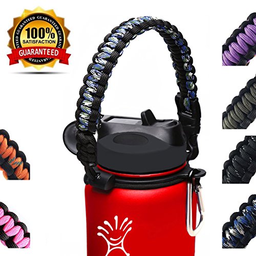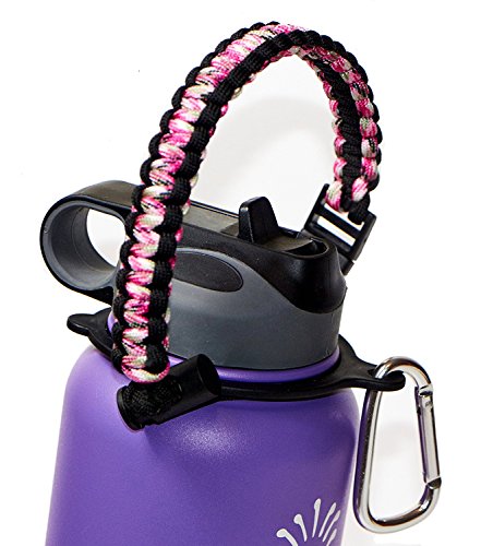 | Hydro Flask Water Bottle Handle With Safety Ring and Carabiner #1 Paracord Handle Attaches to A... |