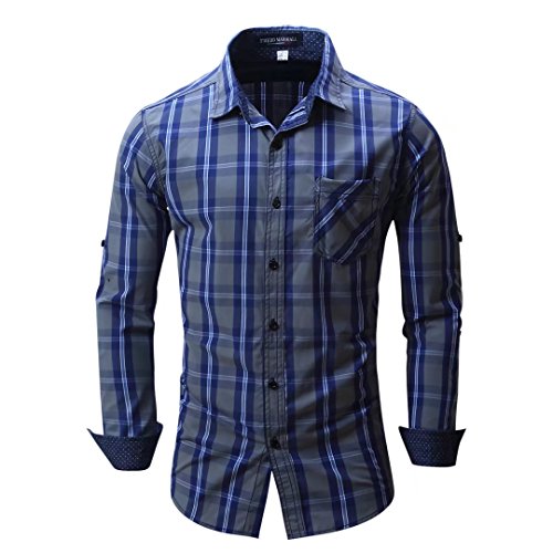 -. Feature : Material:100% cotton wide check shirting.Good capability of tenderness, air permeability and moisture absorption feels soft and comfy. / The craftsmanship appears well done in the details.Contrast dots P.R.Int fabric on collar and cuffs.It also features a front pocket, French convertible cuffs, and coordinates perfectly with virtually any jacket, trousers, suit, tie, and cufflinks, offering endless wardrobe possibilities. / Fashion plaid and button-down design, concise and easy, fashionable elegance, convenient and practical, and both individual character and sport function.Leisure fit type. / Note: the styles are standard European and American sizes and versions.Thanks to according to the size description as below before you buy it. / Suitable for: Sports, Casual, Business Work, Date, Party, Perfect Christmas/Xmas gift for families, friends and boyfriend.