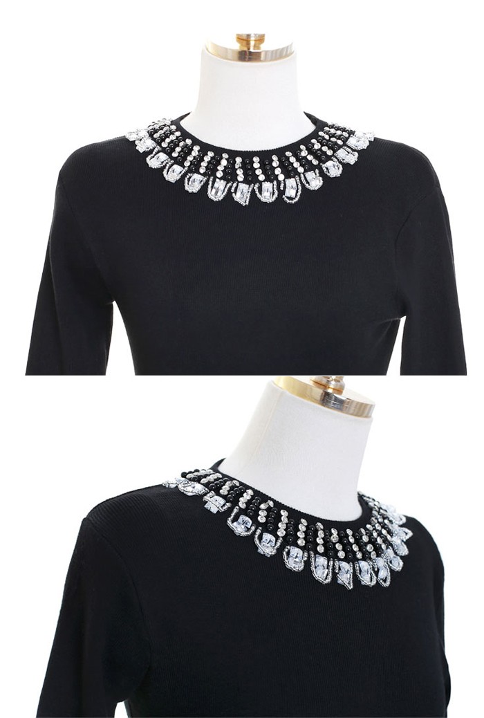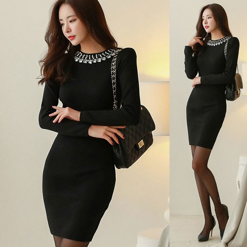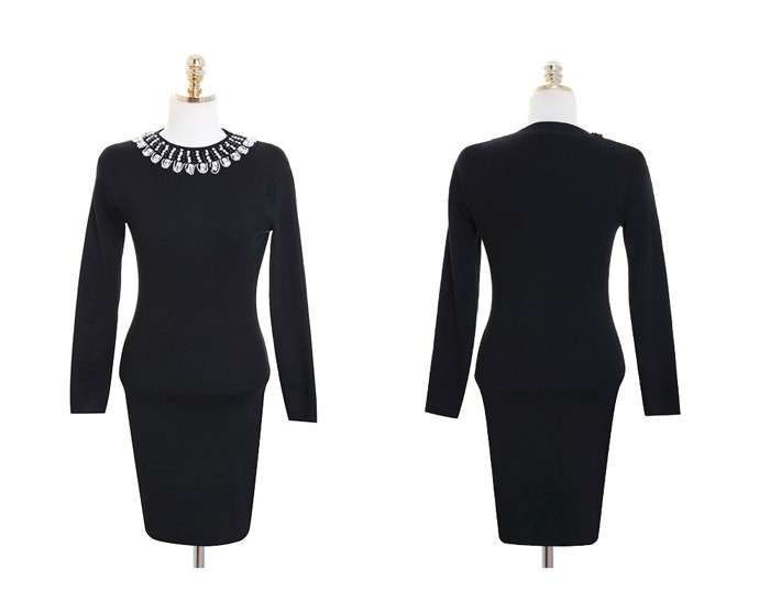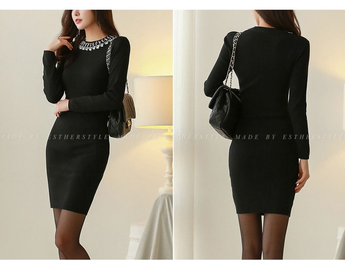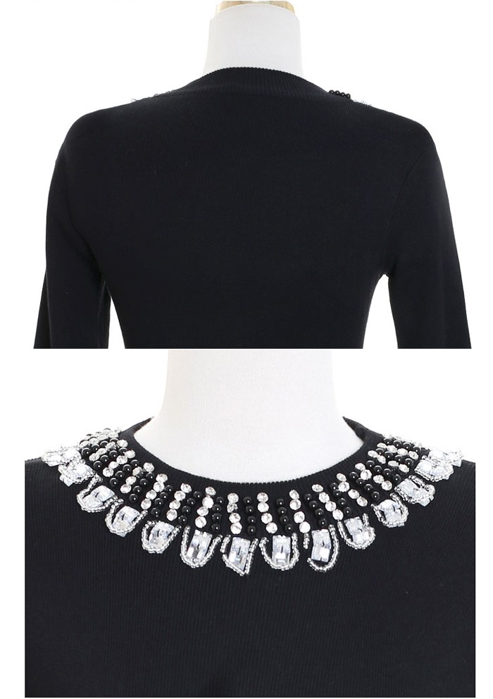 商品名:ワンピース ニット ビジュー 長袖 ミニ丈