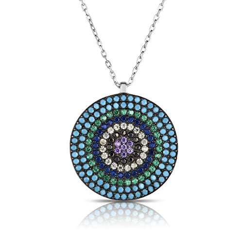-. Binding : Jewelry -. Brand : Unique Royal Jewelry -. Color : Silver -. Department : womens -. Feature : 925 Solid Sterling Silver Nano Pendant with Turquoise/Created Emerald, Sapphire and Amethyst/Onyx/CZ Cluster Pendant and Necklace. / Necklace is adjustable to length of 16", 17" or 18" to accommodate Comfort and personal style. / Chain is 1.2mm Cable Link. Total Weight of Sterling Silver is 3.3 gr. / 3.50 Carat Total Weight of Combined 175 stones pave set. / Elegant Gift Box Included. -. Label : Unique Royal Jewelry -. Manufacturer : Unique Royal Jewelry -. ProductGroup : Jewelry -. ProductTypeName : FASHIONNECKLACEBRACELETANKLET -. Publisher : Unique Royal Jewelry -. Studio : Unique Royal Jewelry -. Title : Sterling Silver 6-Multiple Colors Circular Nano Pendant Necklace with Adjustable Length 16"-18".