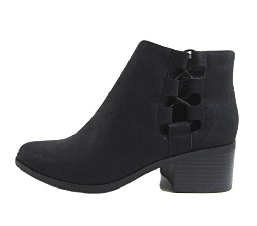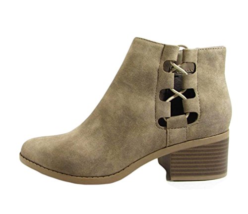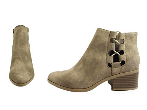 City Classified Women's Side Strech Lace Up Stacked Block Heel Ankle Booties MVE Shoes,