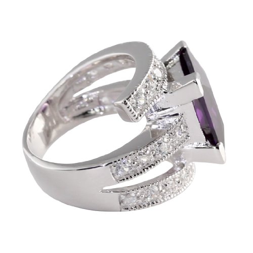 -. Title : P.R.Incess-Cut Purple Cubic Zirconia .925 Sterling Silver Cocktail Wrap Ring
