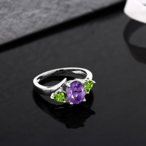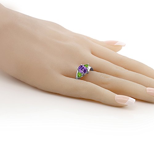 -. Title : 1.62 Ct Oval Amethyst and Peridot Gemstone Birthstone 925 Sterling Silver Ring