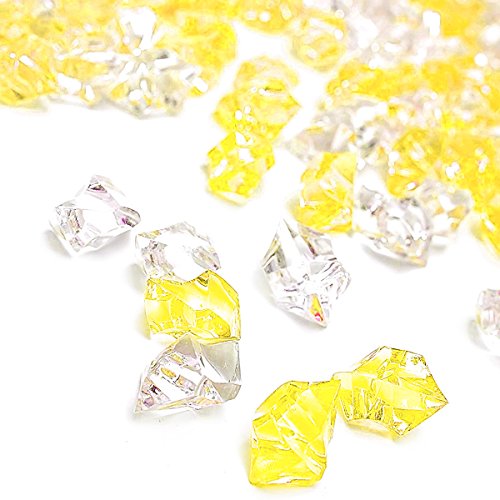 Xmas Fake Ice Cubes, 150 Pack Premium Yellow Acrylic Clear Ice Rock Crystals Crushed Snowflake Diamonds Gemstones Vase Fillers for Decoration Party Centerpiece Wedding by DomeStar
