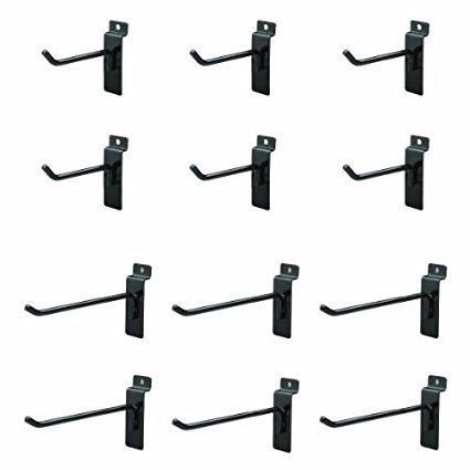Only Garment Racks Bag of 12 (Six 4-Inch and Six 6-Inch) Metal Slatwall Hooks, Black