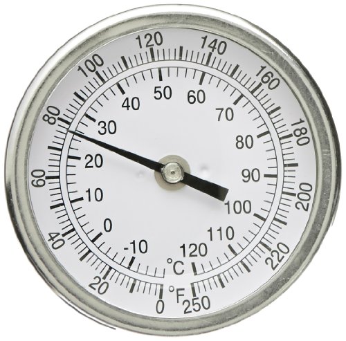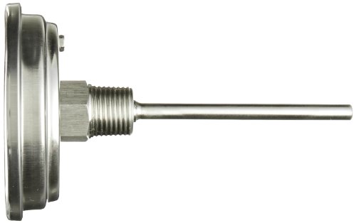 PIC Gauge B3B4-II Stainless Steel Bimetal Thermometer with Back Connection, 3" Dial Size, 4" Stem Length, 0/250° F and 0/250° C Temperature Range