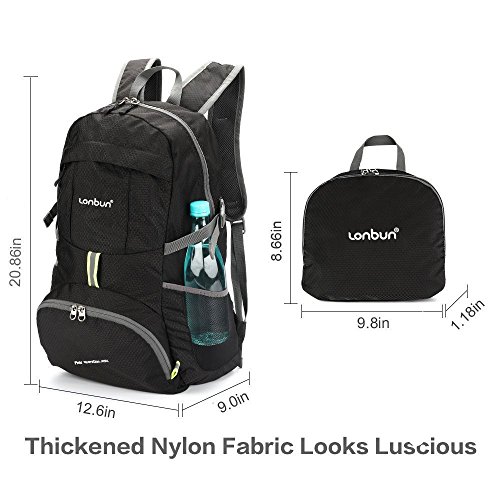 High Quality Waterproof Nylon Fabric We use high quality tear and water resistant nylon fabric to guarantee a long-lasting performance. It is very lightweight and durable. And it become a very compact size when you fold it, which is very easy for you to take with. Brand Zipper and Plastic Buckle Many customer meet the problem of a backpack with a easily broken zipper and that is what we concerned. In this backpack, we use high quality SBS brand zipper and YNS plastic buckle to make sure it last longer than other items.