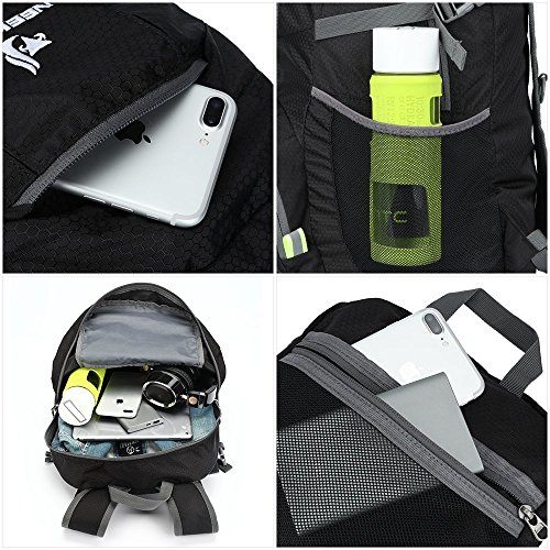 Comfortable and Durable This lightweight and durable backpack fetures ventilated mesh shoulder straps with plentiful sponge padding. It can help to relieve the stress from your shoulder. This makes you feel comfortable in travel hiking journey. Longevity is further enhanced by bar-tacks at major stress points.Max weight capacity is 44lbs.