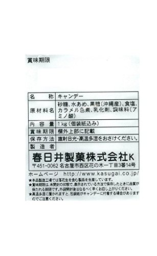 原材料:砂糖、水あめ、黒糖(沖縄産)、食塩、カラメル色素、乳化剤、調味料(アミノ酸)