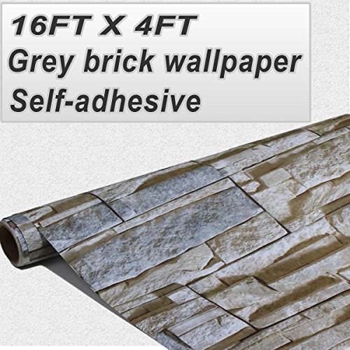 -. Title : EZPaper gray brick wallpaper contact paper self adhesive peel and stick vinyl film