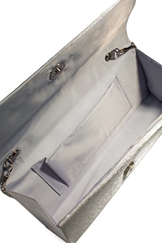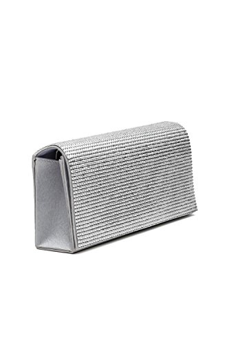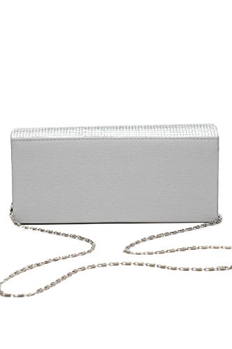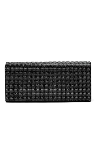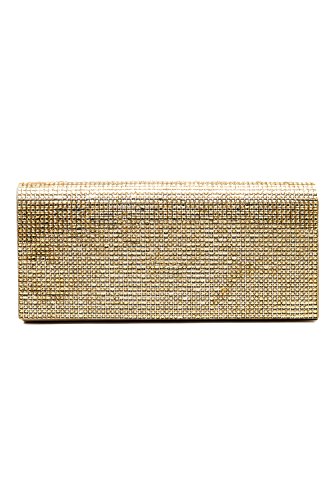 Did you ever wonder why a fancy evening bag is called ""clutch""? By tradition, these bags are usually small and rectangular that need to be clutched, hence the name. This traditional shining envelope clutch is a perfect accessory for the special occasions when you need something sparkling and chic to complete your evening outfit. The front part of the purse, which is represented by a massive fold-over flap, is covered with a tight rows of small square rhinestones. The side and back panels of the bag have smooth and sleek surface. A magnetic snap closure allows you to open and close your clutch smoothly and provides extra security for your belongings. And the flat base of the clutch ensures upright structure. The inner lining is crafted from smooth satin fabric. Also inside you can find a tiny pocket for your credit cards or an ID card. This shining luxurious clutch purse comes with an optional crossbody chain strap. It gives you an option to toss your handbag over the shoulder and free your hands. Otherwise tuck the chain into the wallet and keep this shiny little thing in your hands. All metal parts have high resistance to rust, corrosion, oxidation and tarnishing so your minaudiere clutch will shine as a new one even after years in use. Small and neat by sight the envelope purse is spacious enough to keep your essentials: a cell phone, home and car keys, ID card, credit cards, some money and makeup. As the clutch fits most big screen smartphones, you can take along with you an iPhone 6 Plus, iPhone 7 Plus, Samsung S7 Edge or another gadget of the same or smaller size.Feature