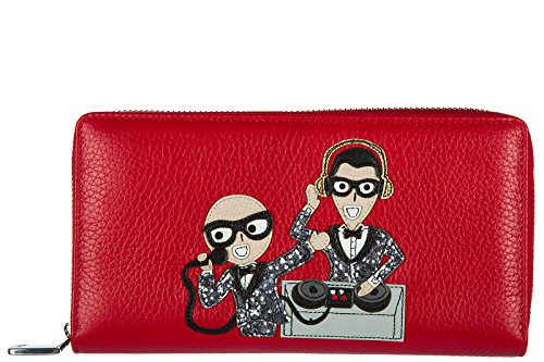 Product DescriptionDolceGabbana men's wallet leather coin case holder purse card bifold zip around patch stilisti red portafoglio coin case men's0