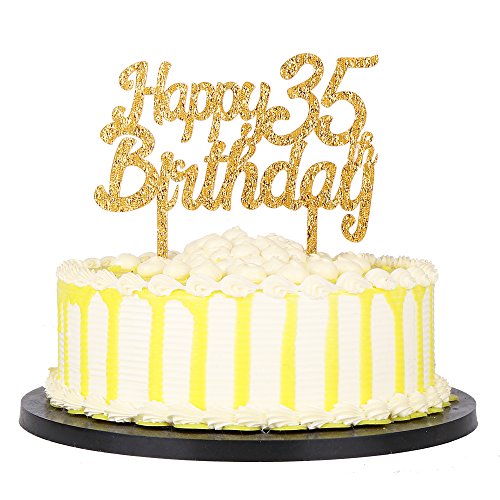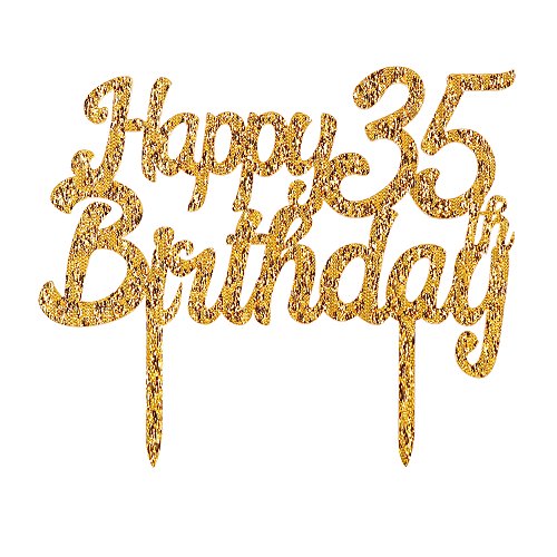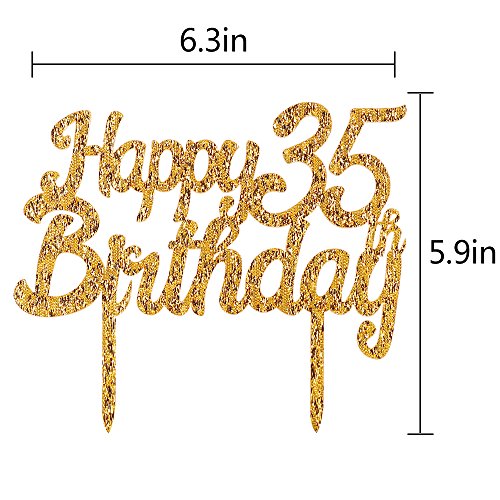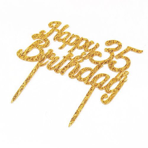 Gold Glitter Acrylic Happy Birthday 35th Cake Toppers,Party decor Decorations(6.2-inch)