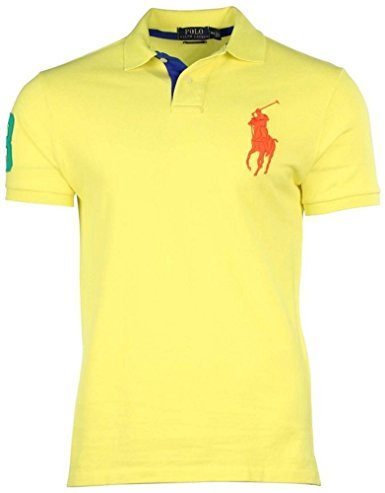 Polo Ralph Lauren Mens Custom Fit Big Pony Mesh Polo Shirt Yellow X-Small