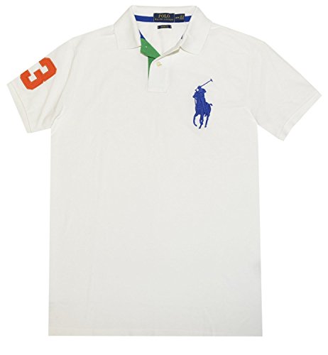 Polo Ralph Lauren Men's Custom Fit Big Pony Mesh Polo Shirt (XX-Large, White / Multi Collar)