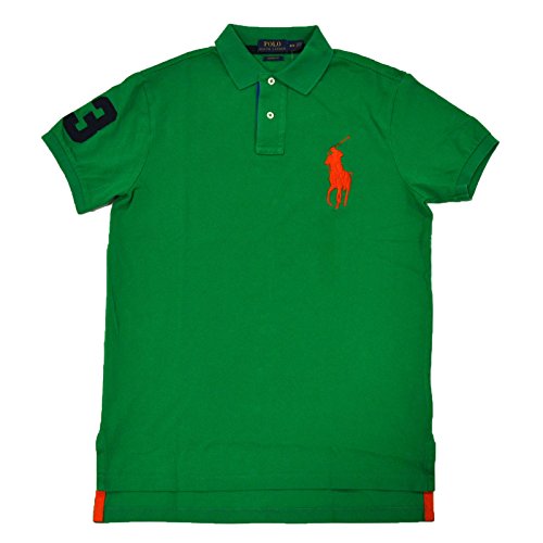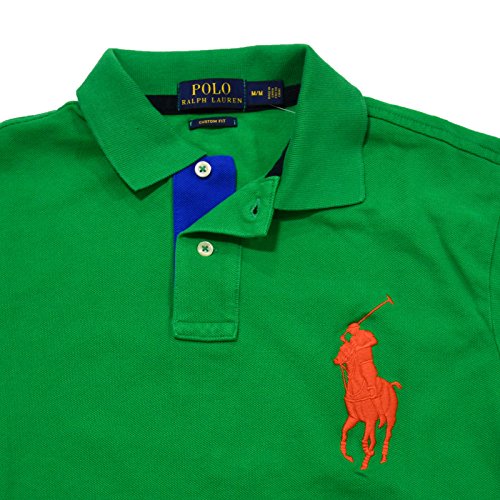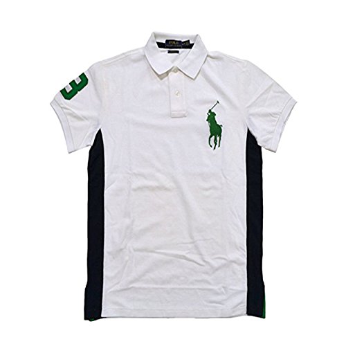 Polo Ralph Lauren Mens Custom Fit Big Pony Mesh Polo Shir (M, White Green Pony)