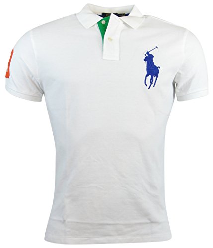 Polo Ralph Lauren Mens Custom Fit Big Pony Mesh Polo Shir (S, White Green Pony)